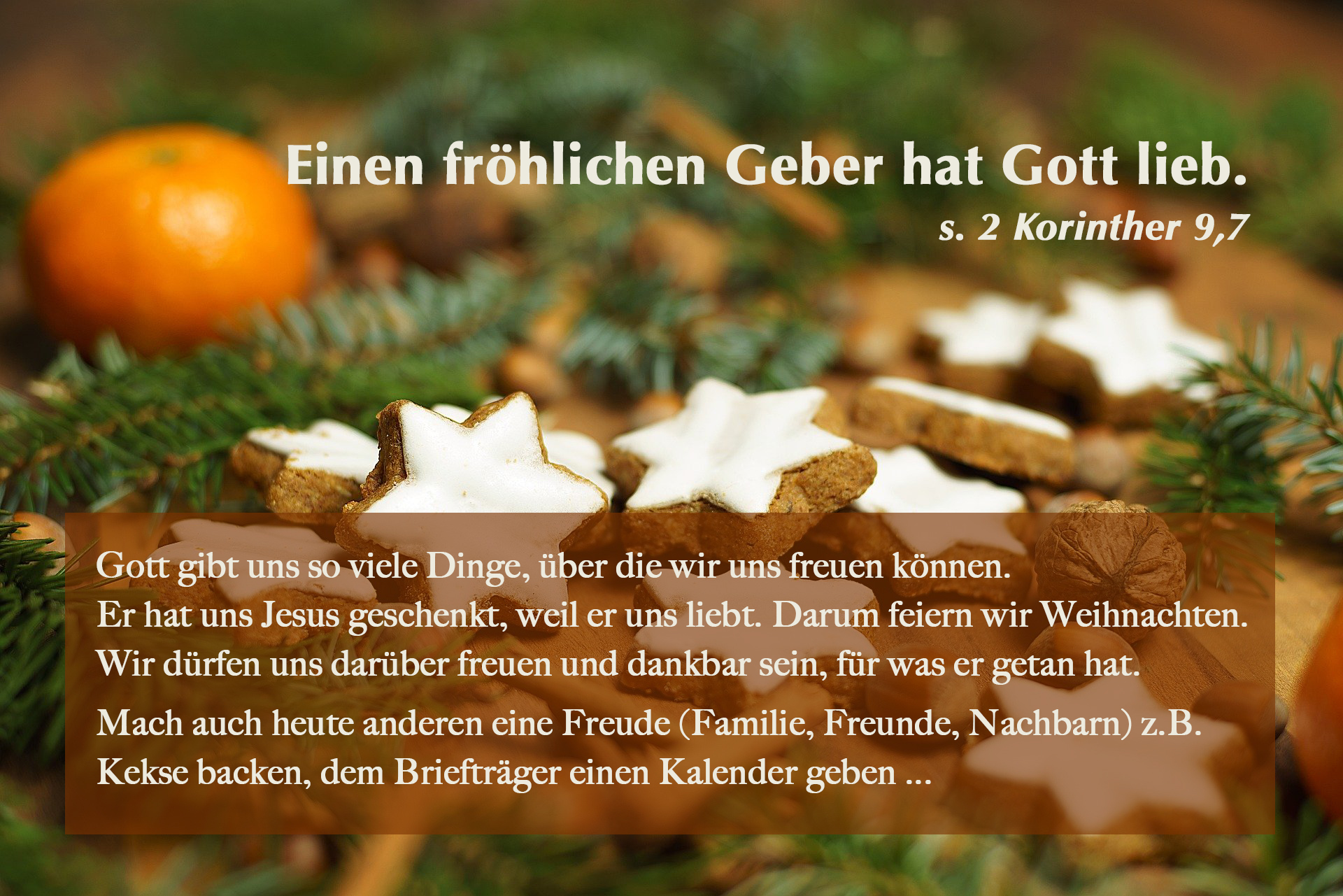 Adventskalender Dieser Adventkalender wurde von Geschwistern für die Gemeinde erdacht und gestaltet. Frohe und gesegnete Adventszeit!